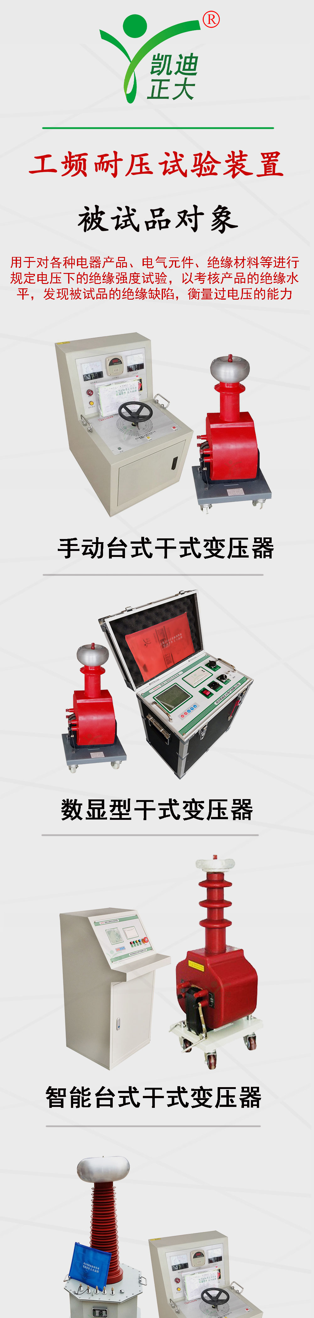 KDGTB工頻耐壓試驗(yàn)裝置是根據(jù)國家較新電力行業(yè)標(biāo)準(zhǔn)而設(shè)計(jì)的、性能新的的耐壓試驗(yàn)設(shè)備,用于對(duì)各種電器產(chǎn)品、電氣元件、絕緣材料等進(jìn)行規(guī)定電壓下的絕緣強(qiáng)度試驗(yàn),以考核產(chǎn)品的絕緣水平,發(fā)現(xiàn)被試品的絕緣缺陷,衡量過電壓的能力。