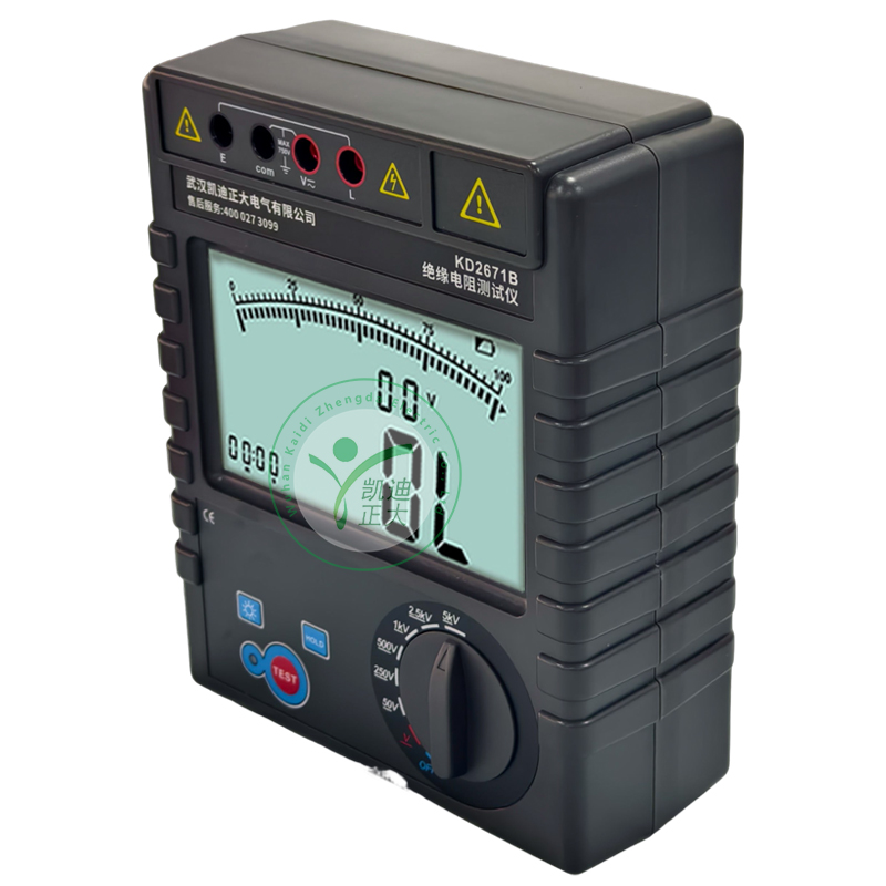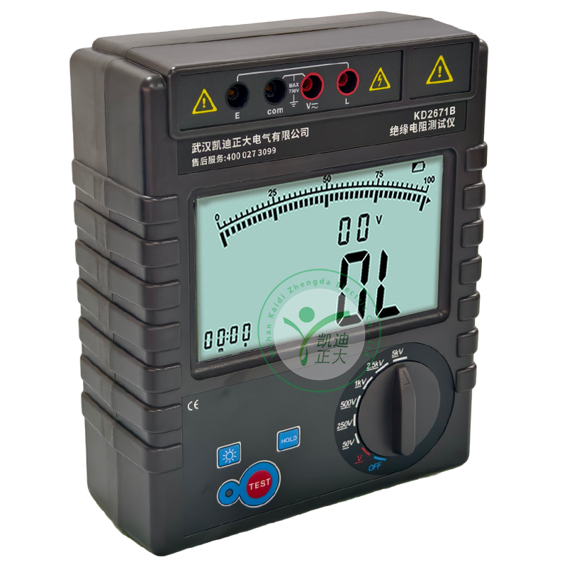 絕緣電阻測試儀又名兆歐表,用于絕緣電阻的測試。本儀表是一款高性能數字式儀表,具有LCD大屏幕帶背光顯示、數據保持、自動放電、自動關機等功能。儀表具有測試計時、電壓監測功能,回路電壓大于36V時,儀表將禁止測試以保護被測物及人員安全。