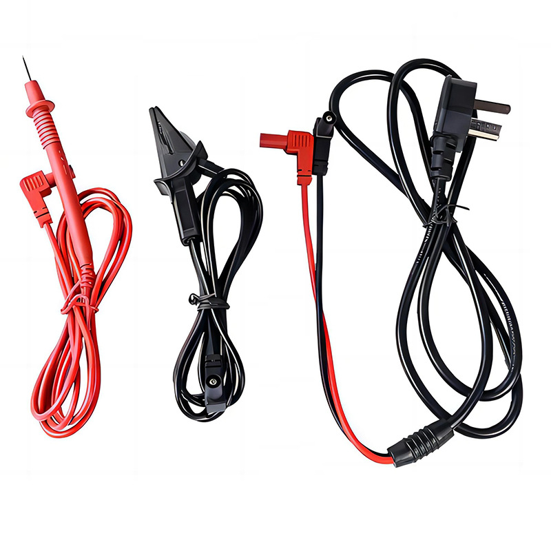 隨機附件:主機:1件;布包:1件;表筆測試儀:1條;鱷魚夾測試線:1條;插座測試線:1條;電池 LR6 :4節