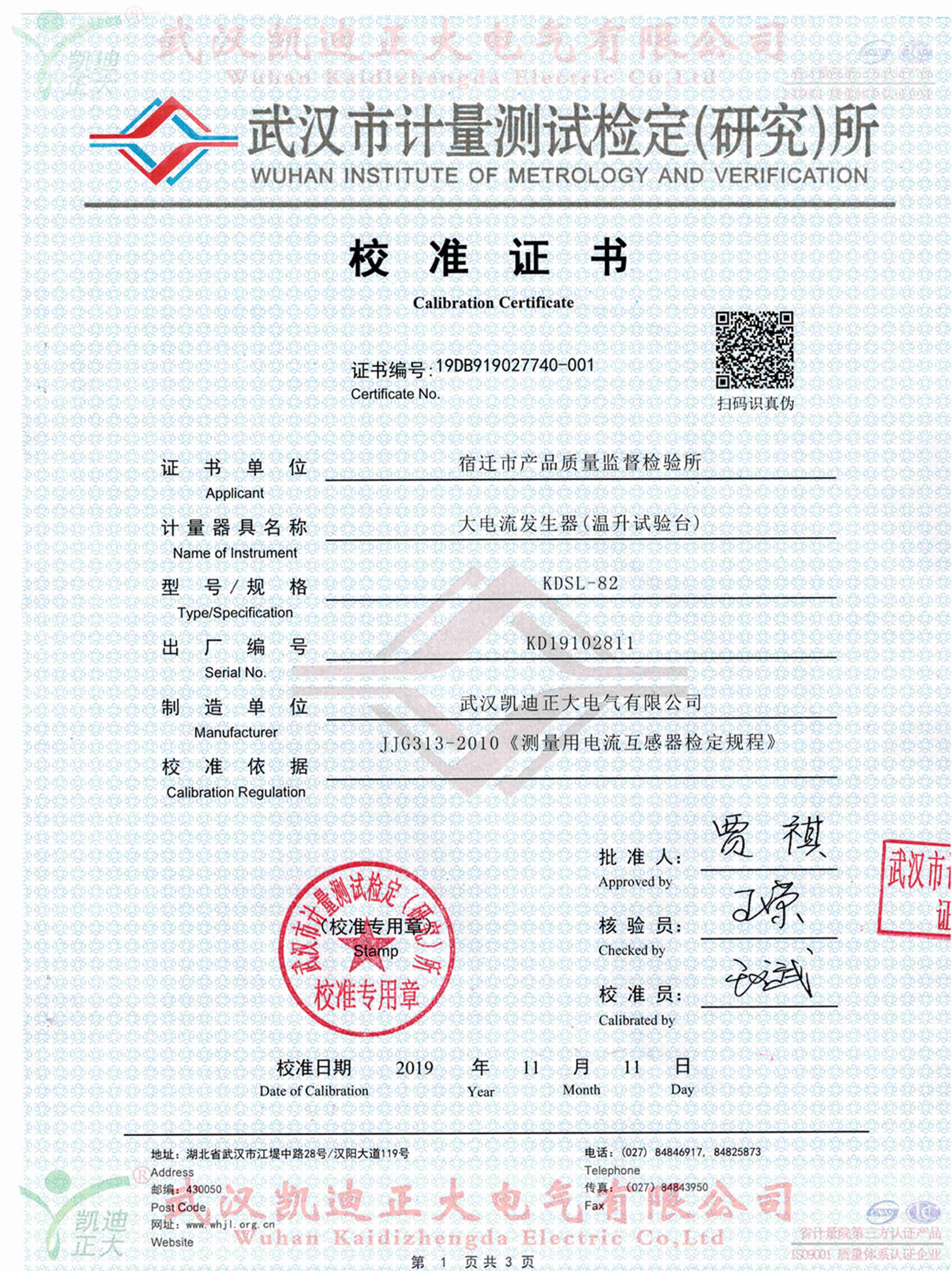 武漢市計(jì)量測試檢定(研究)所對(duì)宿遷市產(chǎn)品質(zhì)量監(jiān)督檢驗(yàn)所采購的產(chǎn)品作檢定效驗(yàn)報(bào)告。