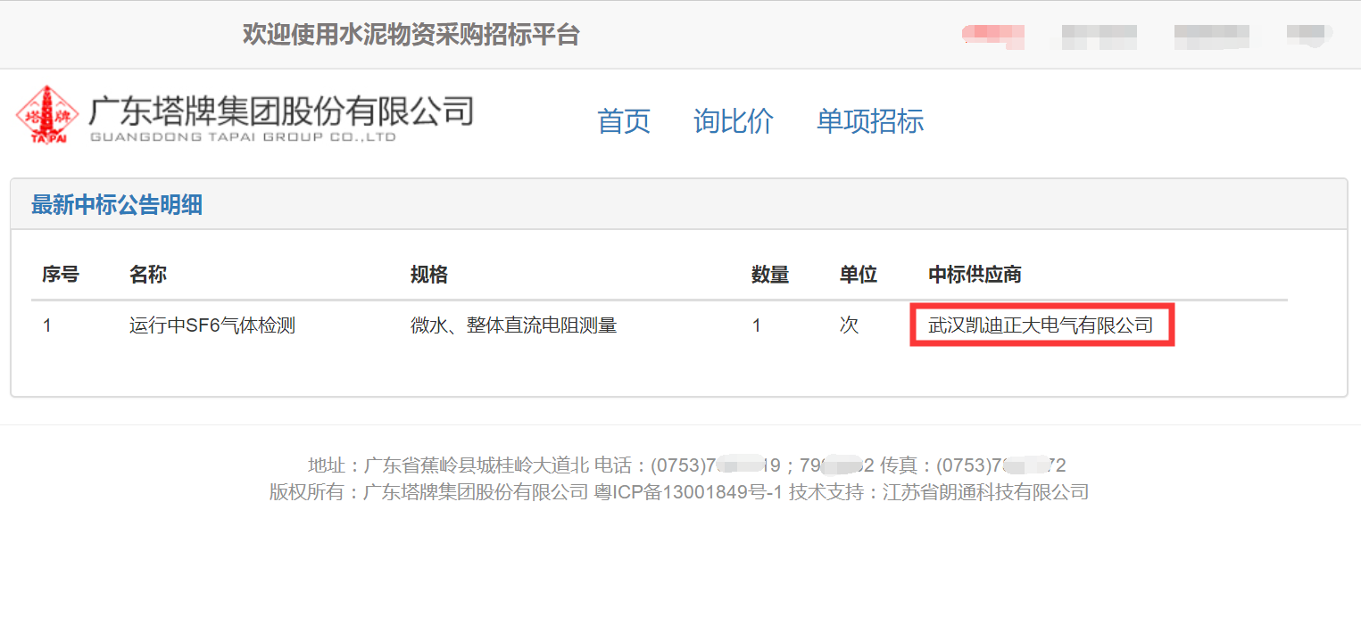 祝賀我司中標塔牌集團運行中SF6氣體檢測