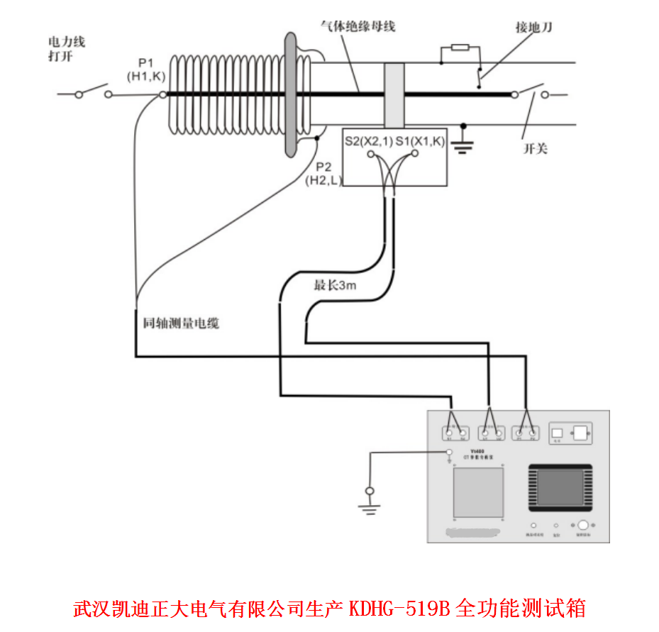 KDHG-519S多功能Engine開關(guān)柜低壓開關(guān)專用測試儀:連接KDHG-519S多功能Engine開關(guān)柜低壓開關(guān)專用測試儀的等電位地端子到保護地。 解開負(fù)載與CT的S1(X1,K)的連線。連接CT參數(shù)分析儀 的“S1、S2”及“U1、U2” 測量輸入端口Ⅰ到解開的負(fù)載端和CT的二次側(cè)端子 S2 (X2, l))。