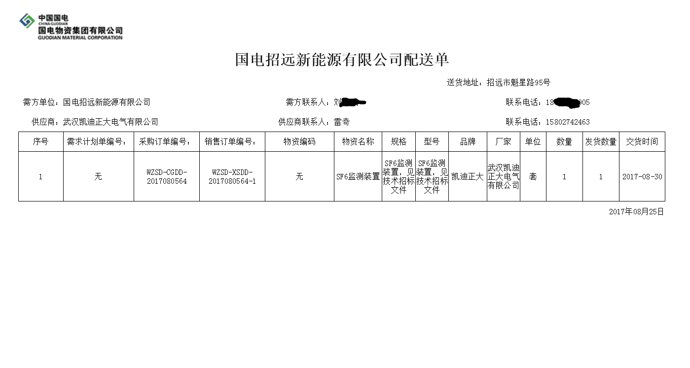 近期江城持續(xù)高溫,酷暑難耐。但絲毫沒有影響凱迪正大同仁的工作熱情,八月中旬,凱迪正大在國電招遠新能源有限公司《35KV配電室加裝SF6監(jiān)測裝置項目》招標采購中,憑借著良好的市場信譽,可靠的產(chǎn)品質(zhì)量成功拿下此標的。詢價單編號:WZSD-2017080285