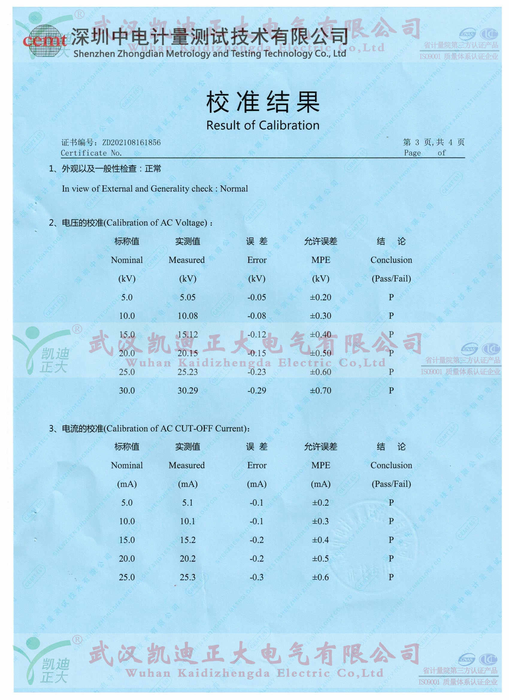 5、隨后的直流電壓試驗:疊加沖擊電壓試驗后,試驗對象應在不加熱的情況下經受負極性直流電壓試驗,試驗電壓為Ur,持續時間為2h。該試驗開始前允許有一段停頓時間。